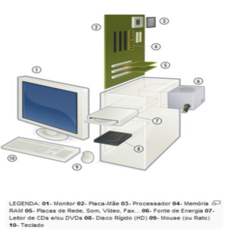 Hardware ou Equipamento – É toda a parte física do computador e seus componentes. Ex: o mouse, teclado, monitor, etc.
